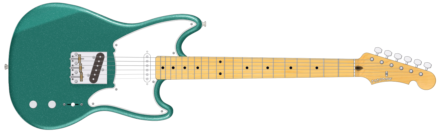 Inspirations from years past are seen in the pickguard design as well as the ultra comfy neck with a 9.5" radius fretboard and vintage sized frets.